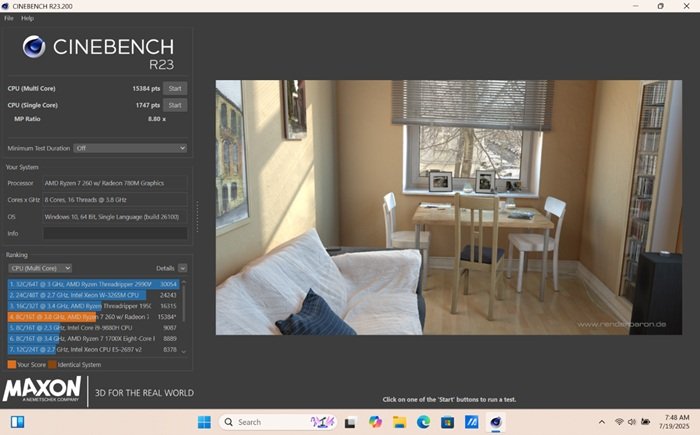 Ditenagai AMD Ryzen 7 260 berbasis arsitektur Zen 5, laptop ini menghadirkan efisiensi tinggi dengan delapan core dan enam belas thread. Kehadiran NPU XDNA 16 TOPS memungkinkan pemrosesan AI secara lokal tanpa harus terhubung ke cloud, mempercepat berbagai tugas seperti menyimpulkan dokumen, pengeditan foto berbasis AI, hingga noise reduction saat konferensi video.