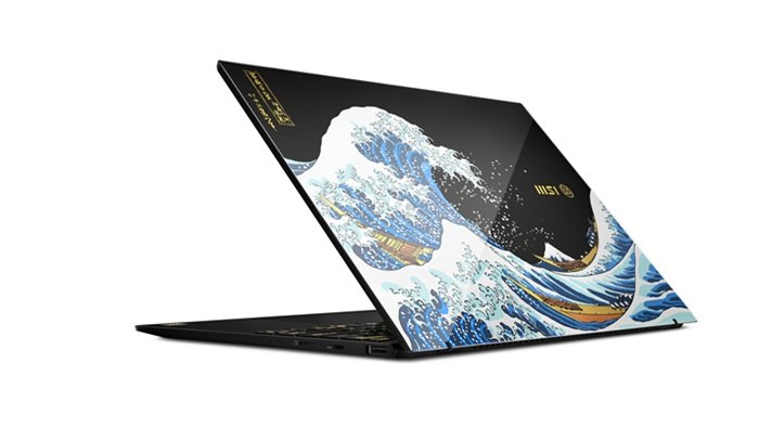 MSI Prestige 13 AI+ Ukiyo-e Edition menampilkan kolaborasi dengan Okadaya, pengrajin Yamanaka lacquerware asal Jepang dengan sejarah lebih dari 400 tahun. Desain tutup laptop menampilkan interpretasi ulang mahakarya Hokusai The Great Wave off Kanagawa, dibuat dengan teknik maki-e lacquer dan bubuk daun emas. Setiap unit dikerjakan secara manual, memastikan tidak ada dua laptop yang benar-benar identik.